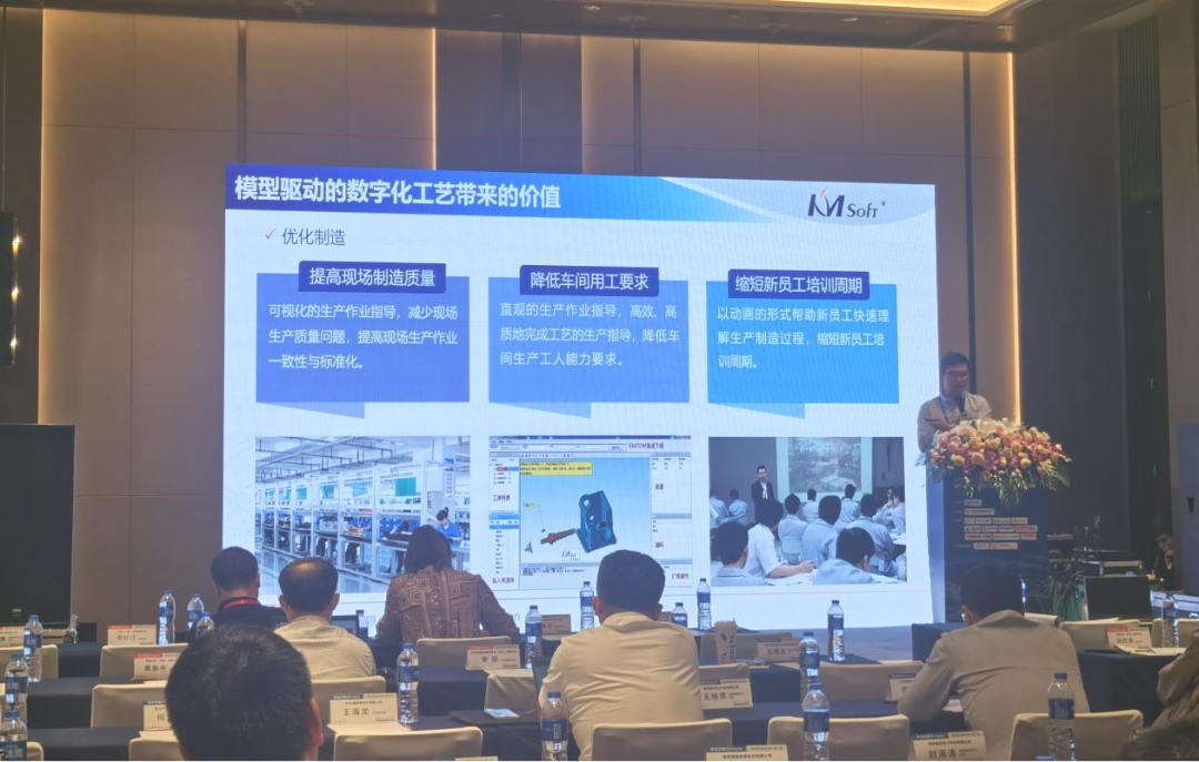 開目公司3D事業(yè)部總經(jīng)理助理駱強應(yīng)邀在大會發(fā)表《模型驅(qū)動的數(shù)字化制造賦能企業(yè)轉(zhuǎn)型》主旨演講,駱總從當(dāng)前制造企業(yè)數(shù)字化轉(zhuǎn)型普遍面臨的問題為切入點,講述了開目面向中國制造企業(yè)潛心研制的“面向模型驅(qū)動的數(shù)字化工藝制造解決方案”,在全三維模型的環(huán)境下,構(gòu)建一體化的智能創(chuàng)新工藝管理平臺,可幫助企業(yè)提升工藝設(shè)計能力,實現(xiàn)三維可視化工藝下車間,優(yōu)化企業(yè)生產(chǎn)制造。