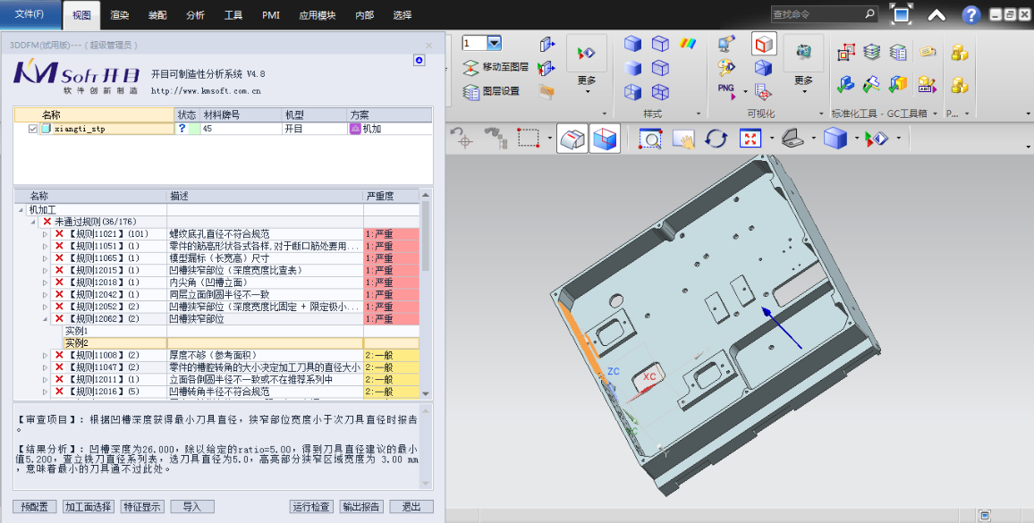 3DDFM基于完全自主核心技術(shù),內(nèi)嵌于三維CAD中,可根據(jù)審查規(guī)則對產(chǎn)品設(shè)計(jì)模型進(jìn)行檢查和分析,輔助設(shè)計(jì)、工藝、制造工程師在產(chǎn)品設(shè)計(jì)階段檢查設(shè)計(jì)的可制造性,提前發(fā)現(xiàn)并修改設(shè)計(jì)缺陷,減少工藝性評審時間以及設(shè)計(jì)返工次數(shù),提高產(chǎn)品質(zhì)量,縮短研制周期。此次線上探討會,專家們將為您全面解讀開目可制造性分析系統(tǒng)(3DDFM)的核心功能與產(chǎn)品優(yōu)勢。