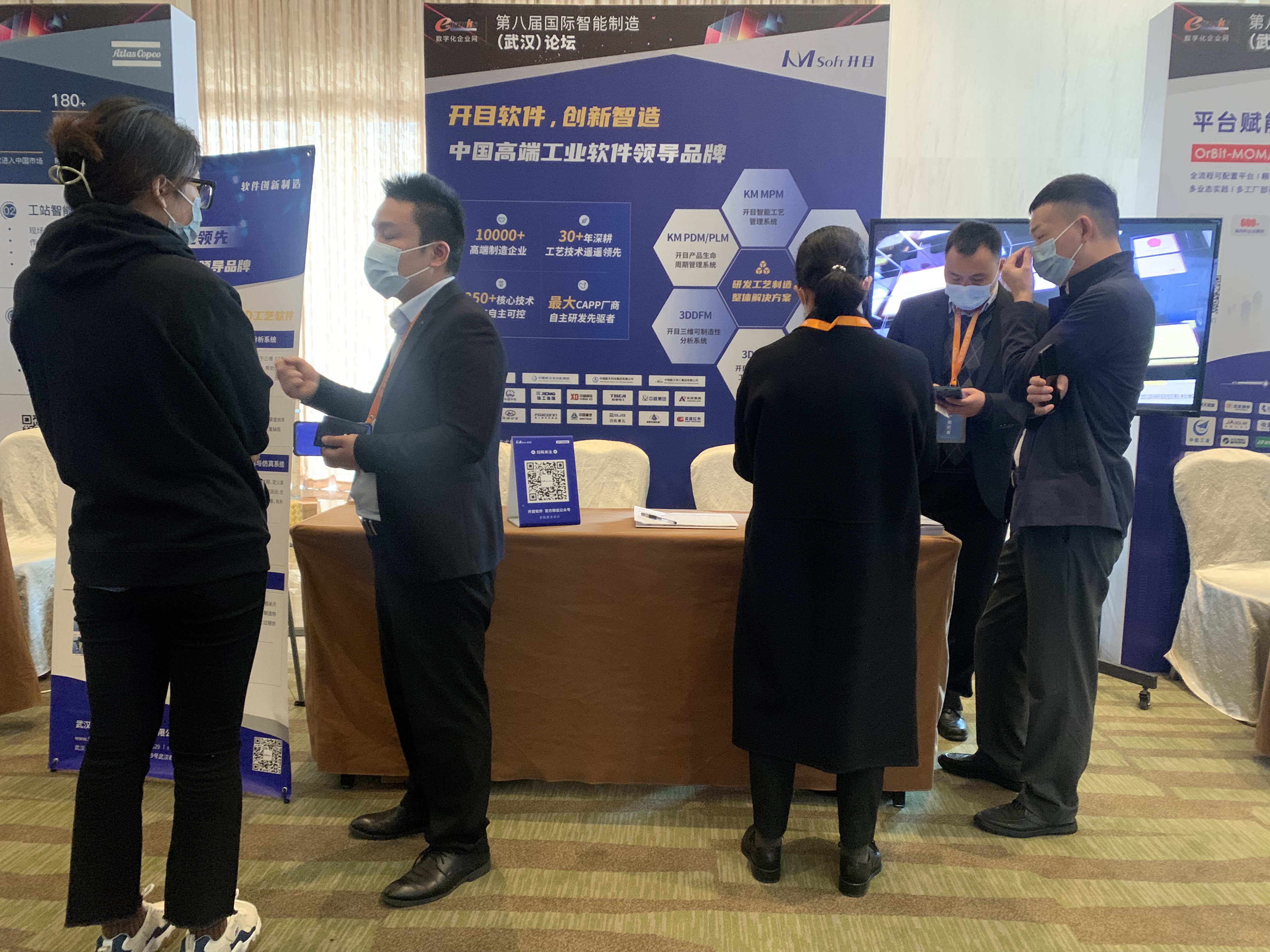 在會場外展示區(qū),開目軟件全面展示了自主研發(fā)的PLM、MPM、MES等一系列覆蓋設(shè)計、工藝、制造環(huán)節(jié)的一體化智能制造解決方案以及以KMCAPP、3DAST、3DMPS、3DDFM為代表的國內(nèi)領(lǐng)先的智能工藝工具產(chǎn)品。專業(yè)先進(jìn)的產(chǎn)品,詳實的講解,豐富的展示,“開目智造”一經(jīng)登場便吸引了眾多參觀嘉賓駐足交流。