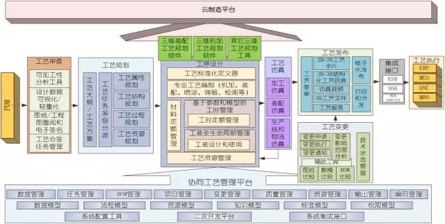 開(kāi)目MPM系統(tǒng)實(shí)現(xiàn)對(duì)企業(yè)工藝部門從三維設(shè)計(jì)模型引入到三維工藝信息發(fā)布的完整業(yè)務(wù)活動(dòng)提供多角度、多層次的支持。主要業(yè)務(wù)流程包括工藝審查、工藝規(guī)劃、工序設(shè)計(jì)、工藝仿真、工藝發(fā)布、工藝變更、工藝執(zhí)行以及構(gòu)建企業(yè)協(xié)同工藝管理平臺(tái)等環(huán)節(jié)。