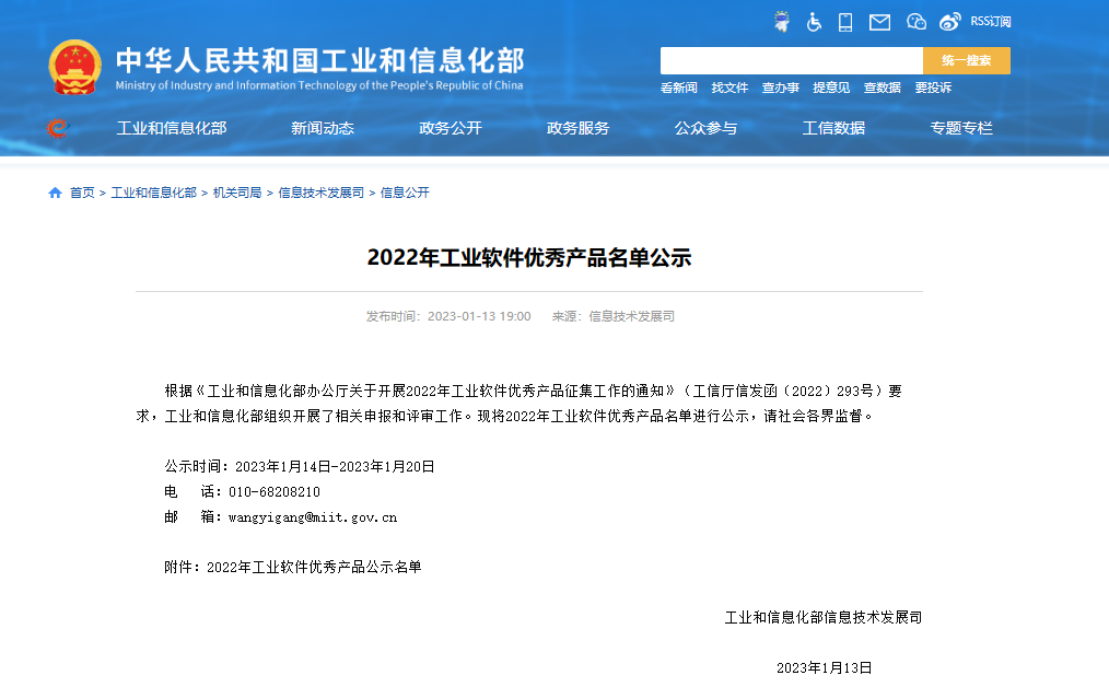 榮獲工信部2022年工業(yè)軟件優(yōu)秀產(chǎn)品