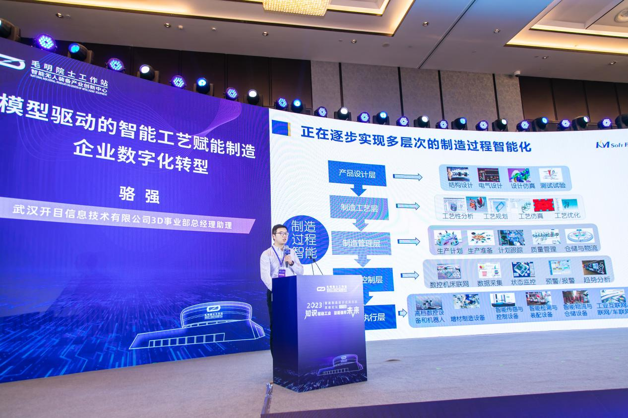 開(kāi)目軟件3DCAPP事業(yè)部總經(jīng)理助理駱強(qiáng)受邀發(fā)表《模型驅(qū)動(dòng)的智能工藝賦能制造企業(yè)數(shù)字化轉(zhuǎn)型》主題演講,他以工藝與制造智能化生態(tài)發(fā)展趨勢(shì)為切入點(diǎn),圍繞模型驅(qū)動(dòng)的智能工藝設(shè)計(jì)總體思路,詳細(xì)介紹了開(kāi)目擁有完全自主知識(shí)產(chǎn)權(quán)的智能工藝設(shè)計(jì)核心技術(shù)。
