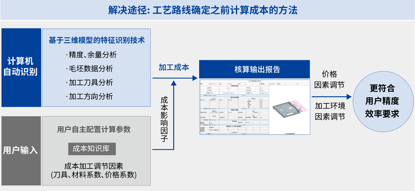 該軟件基于自主研制的先進(jìn)三維設(shè)計(jì)模型特征識(shí)別技術(shù),以及零件加工成本計(jì)算模型,充分融入“并行工程”的關(guān)鍵思想,能快速獲得相對(duì)準(zhǔn)確的加工成本,為面向成本的設(shè)計(jì)優(yōu)化提供參考指引,也為企業(yè)對(duì)外產(chǎn)品報(bào)價(jià)或產(chǎn)品外協(xié)件采購(gòu)價(jià)格提供量化依據(jù),助力企業(yè)發(fā)現(xiàn)關(guān)鍵成本影響因素,挖掘成本優(yōu)化潛力,實(shí)現(xiàn)降本增效。