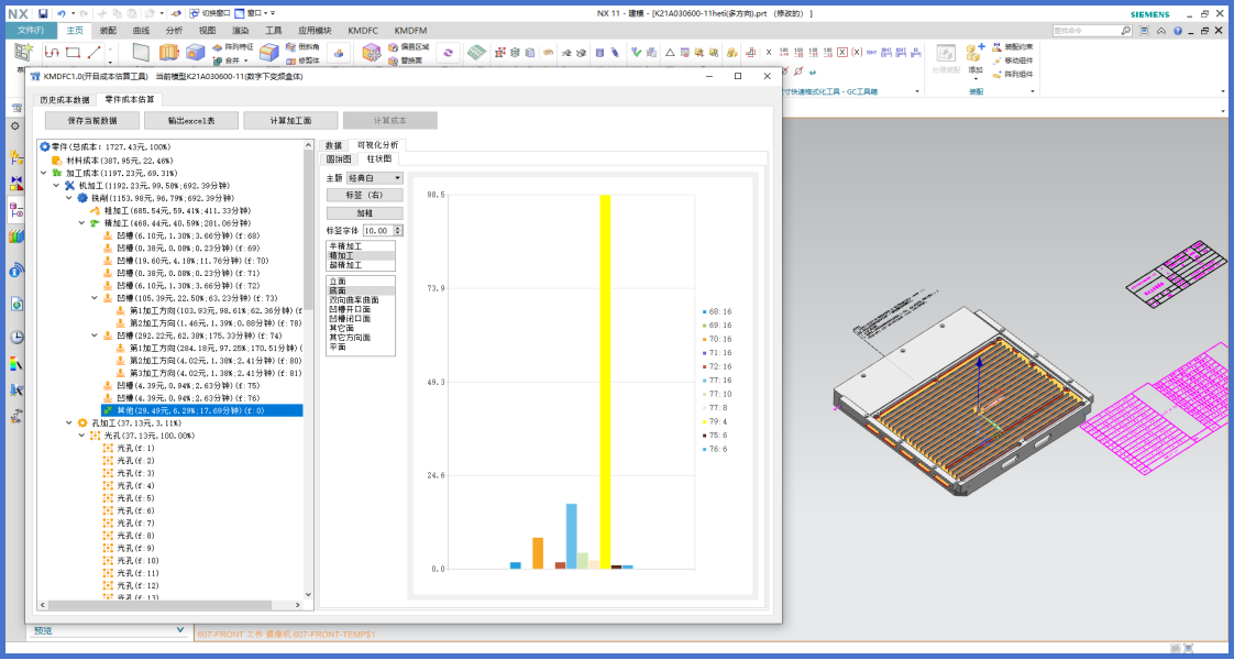 近年來(lái),三維設(shè)計(jì)工具的普及為成本估算的自動(dòng)化和智能化提供了契機(jī)。開(kāi)目3DDFC 是一款基于 MBD 模型和工藝知識(shí)庫(kù)的專業(yè)三維制造成本分析與估算軟件,在不依賴詳細(xì)工藝路線的情況下,根據(jù)零件幾何信息和精度信息一鍵式完成零件成本的分析與估算。