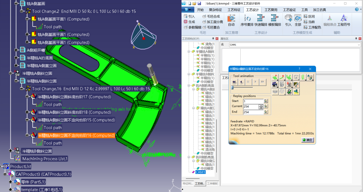 3DMPS可將生成的工序規(guī)劃、內(nèi)容、刀具信息及三維工序模型信息精準(zhǔn)傳遞至CAM模塊,依據(jù) 3DMPS 工藝過程結(jié)構(gòu)樹自動創(chuàng)建程序結(jié)構(gòu),減少人工干預(yù),提升編程效率與質(zhì)量,還可自動生成 CAM 仿真視頻,讓編程更流暢高效。