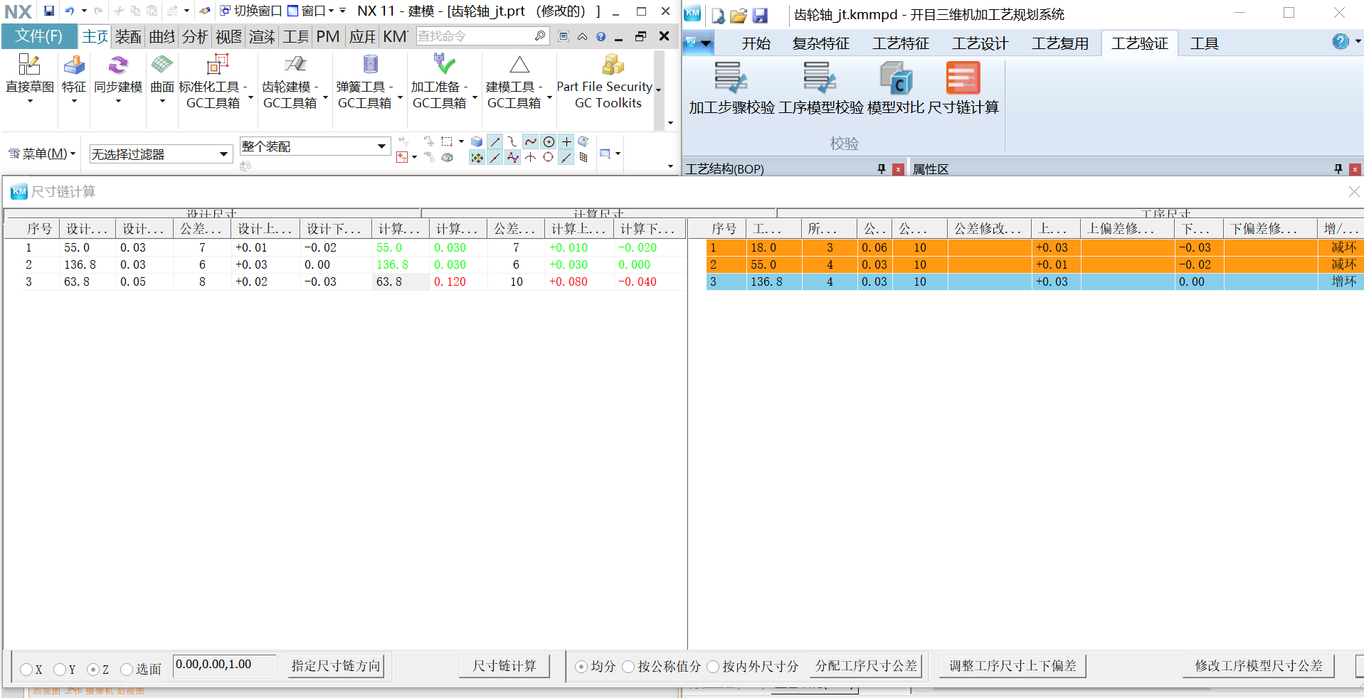 ? 基于PMI標(biāo)注的尺寸鏈計(jì)算。基于模型上標(biāo)注的PMI信息以及加工余量,對全工序模型進(jìn)行封閉環(huán)、增環(huán)、減環(huán)的定義,進(jìn)行尺寸鏈解算,構(gòu)建尺寸鏈圖??沈?yàn)證工序尺寸鏈,計(jì)算尺寸其公差是否符合設(shè)計(jì)尺寸公差要求,幫助驗(yàn)證、分析及避免工序尺寸公差錯(cuò)誤,保證零件質(zhì)量。